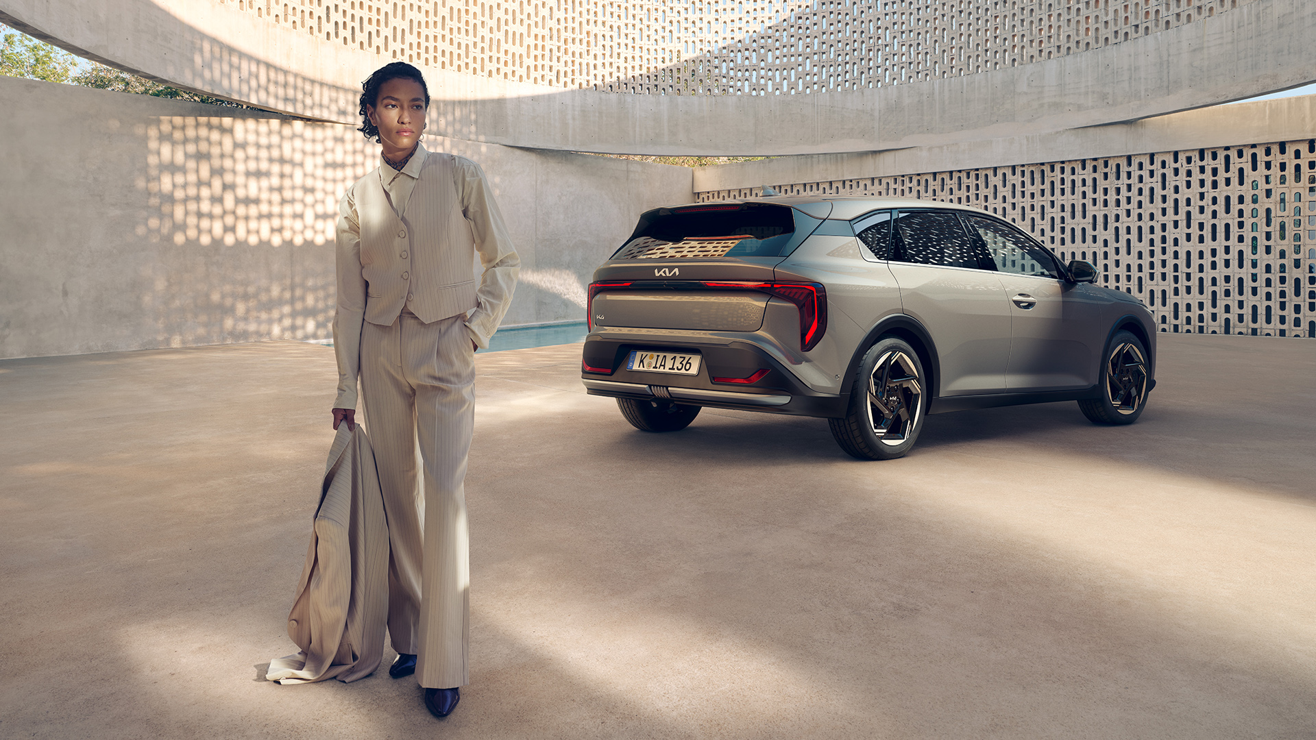 Am Heck sorgen gedrehte L-förmige LED-Rückleuchten für eine markante Lichtsignatur, die sowohl tagsüber als auch nachts ins Auge fällt. Ein sportlicher Diffusor am Stoßfänger und schwarze Designelemente im unteren Bereich unterstreichen den dynamischen, modernen Look. Abgerundet wird das Ganze durch einen auffällig geformten Dachspoiler, der den Heckscheibenwischer verdeckt. Der K4 hinterlässt einen bleibenden Eindruck.